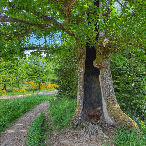 Ein kurzer, aber steiler Anstieg bringt Sie schließlich hinauf zum Hermelsbacher Friedwald. Von dort verläuft der Rückweg sanft bergab zurück zum Ausgangspunkt an der Grillhütte am Tiergarten.